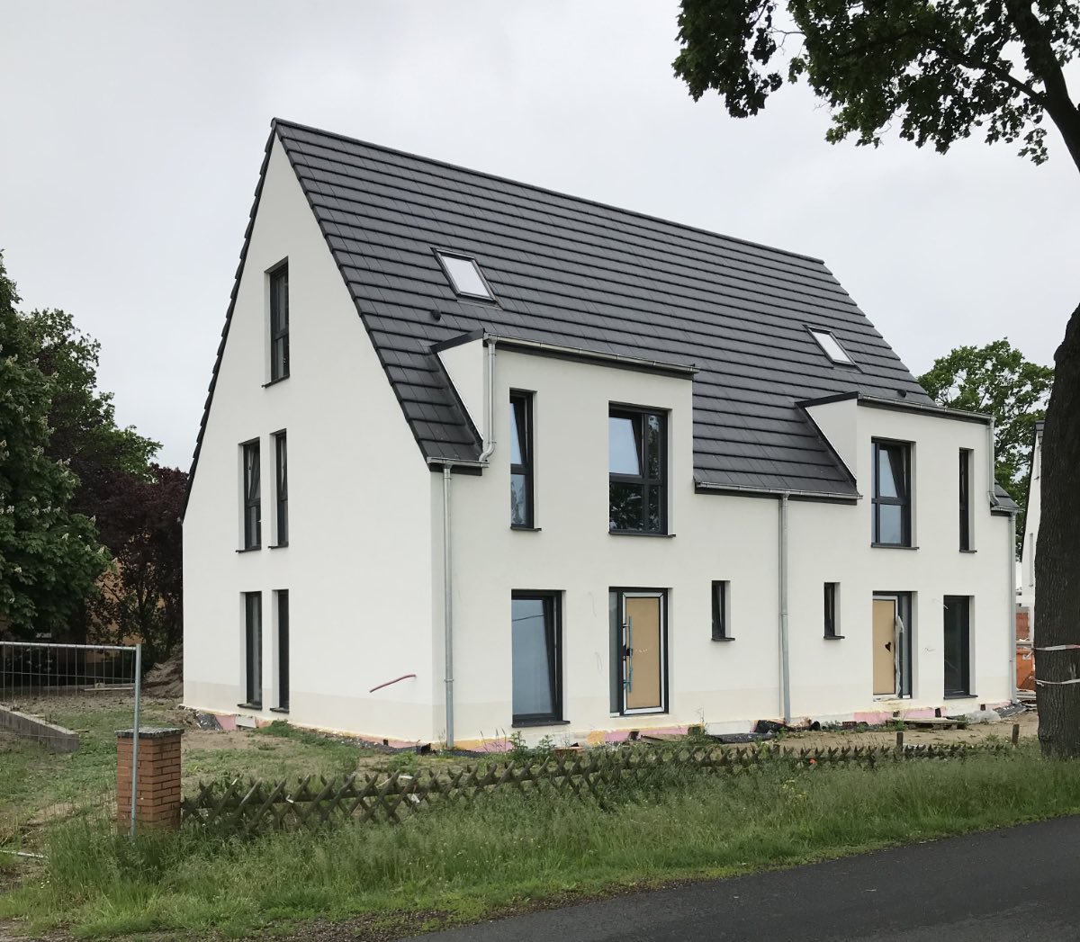 Hier entsteht in Massivbauweise ein Doppelhaus. Das Haus ist voll unterkellert und hat zusätzlich eine gemaurte Garage.