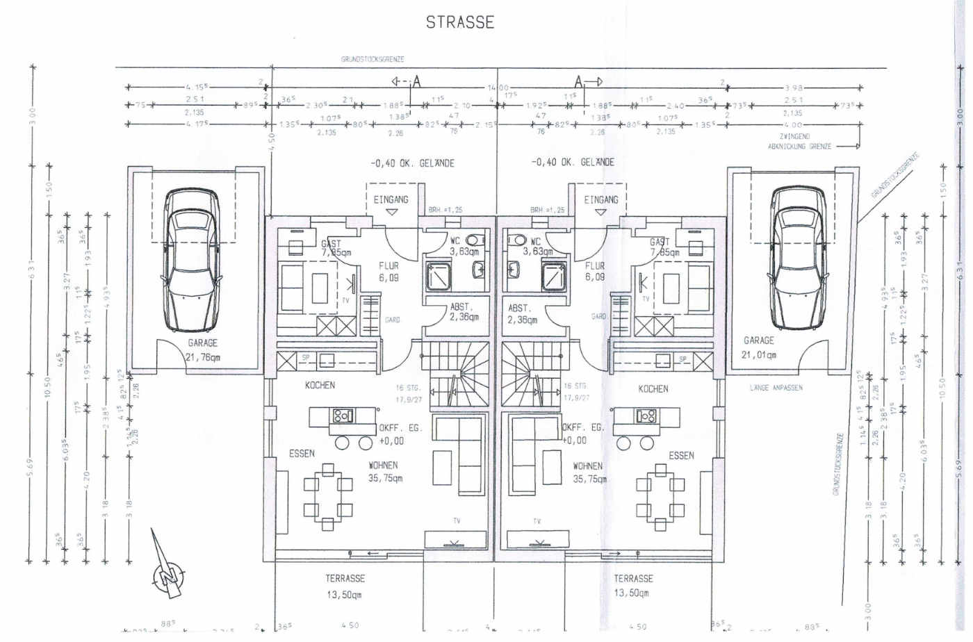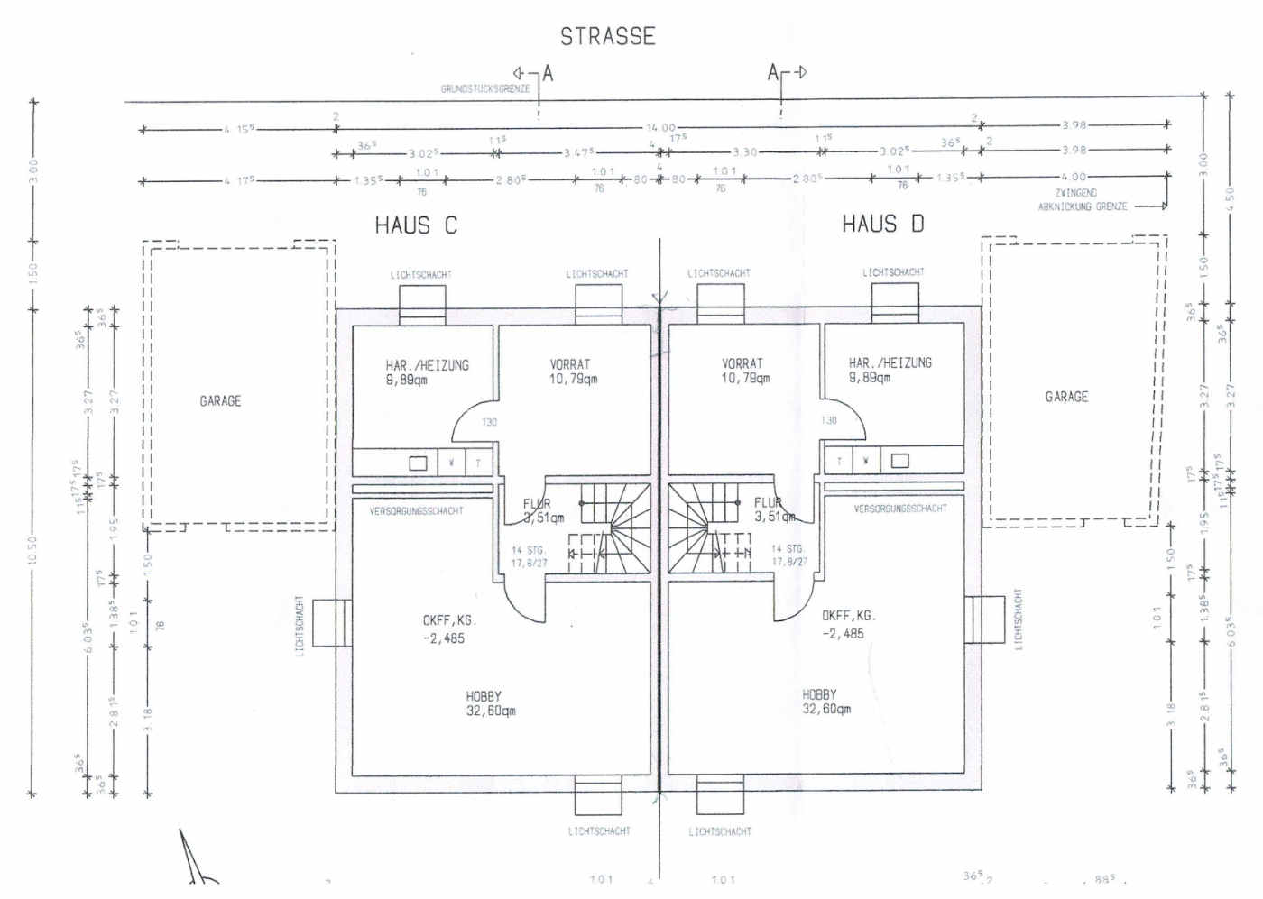 Die Häuser sind voll unterkellert und haben zusätzlich eine gemauerte Garage, durch welche Sie direkt in den Garten gelangen können.
